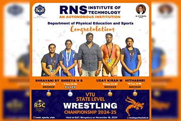 Secured Bronze Medal in the VTU state Level Wrestling Championship 2024-25 held at GAT, Bengaluru Nov 16 2024