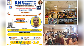 The Department of ECE, RNS Institute of Technology conducted An Expert Talk on “Overview of 5G and Career Opportunities” on March 13, 2026. The session was delivered by Mr. Devadasa Pai B, Founder and CEO of NanoCell Networks Pvt. Ltd., who provided valuable insights into the fundamentals of 5G technology, its evolution, and real-world applications.
